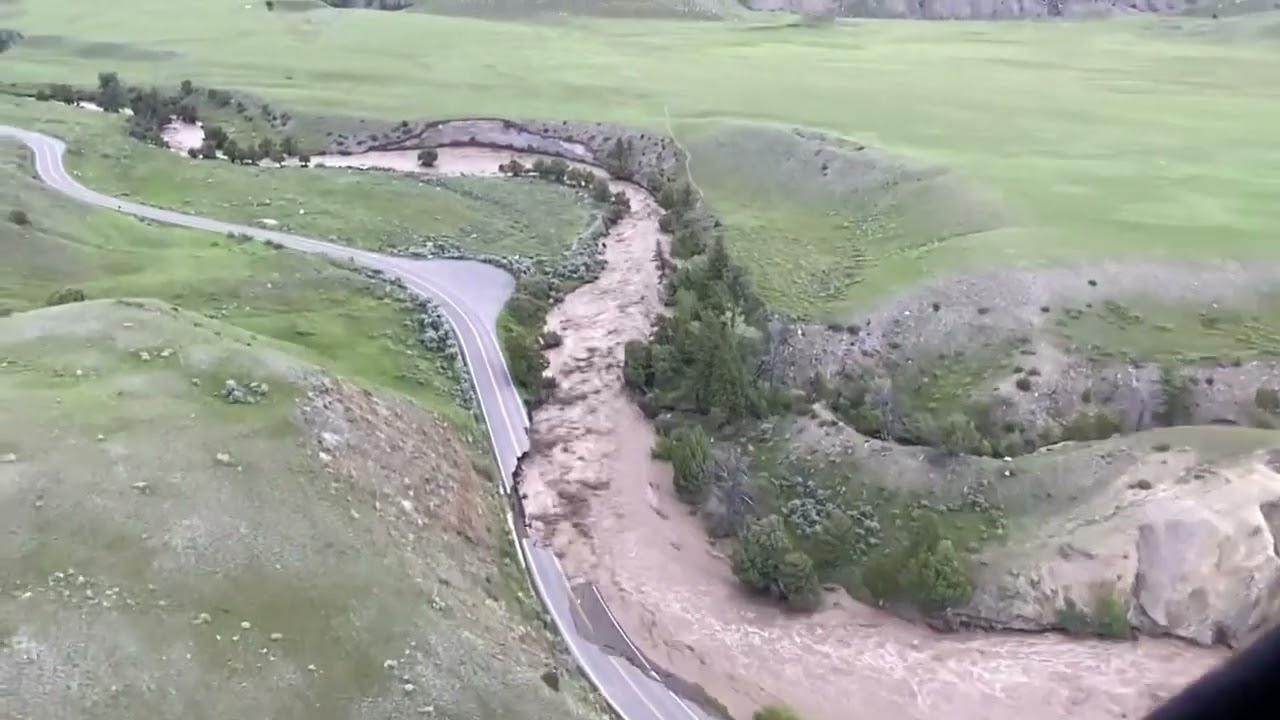 All of the roads going into Yellowstone National Park are shut down. There’s been so much rain that they’re damaged. If you look at this video, you can see that any section of the road that was up against a bend in the river is destroyed from the water carving away at the dirt underneath the pavement.
